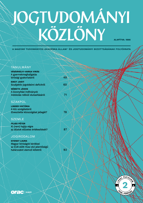 A Jogtudományi Közlöny lapszámai (2000−2026) online: